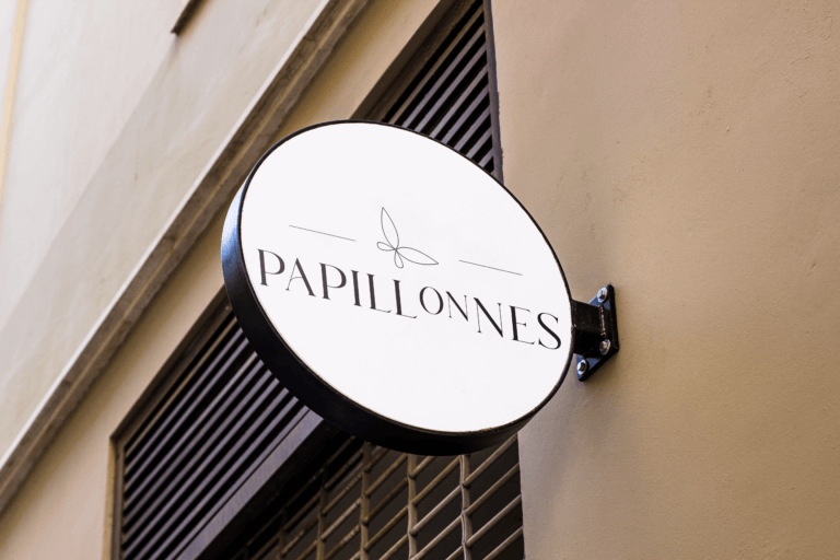 Pour créer un vrai univers autour du restaurant, j’ai intégré un papillon comme élément graphique pour symboliser le changement, l’élégance et la féminité. Des mots qui résonnaient pour Kenza.